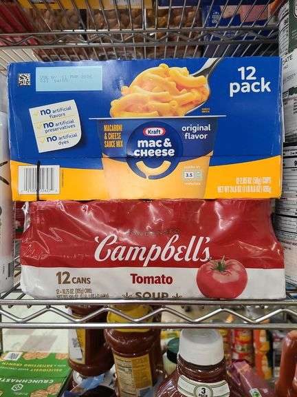 1) Kraft Mac & Cheese Cups, 1) Campbell's Tomato Soup