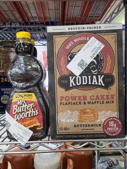 1) Mrs.Butterworth's Original Syrup 2 Pack, 1) Kodiak Power Cakes Waffle Mix