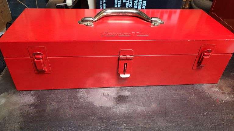 Snap-On Tool Box with Contents: Piston Groove Cleaner, Ring Squeezer, Coil Spring Compressor, Piston