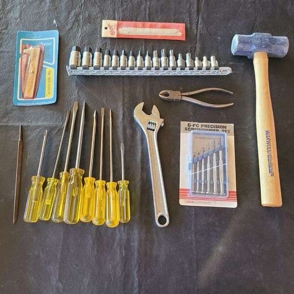 Set of Screwdrivers, Wrench, Sledge Hammer, Set of Assorted Sockets and More