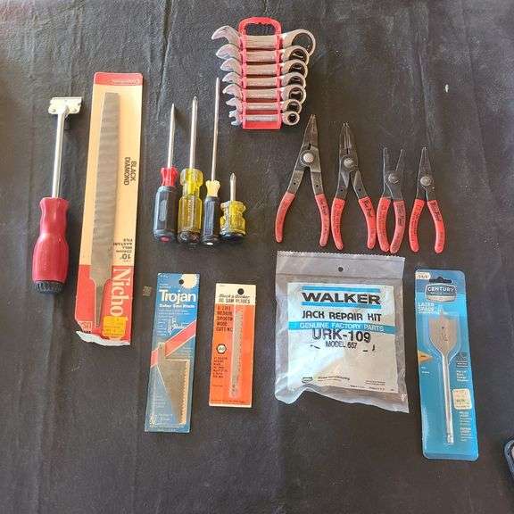 Pittsburgh Tekton 12-Piece Ratcheting Combination Wrench, Blue Point Set Retaining Ring Pliers, Jack