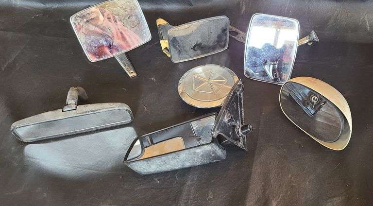 Vintage Car Side Mirrors and Chrysler Emblem
