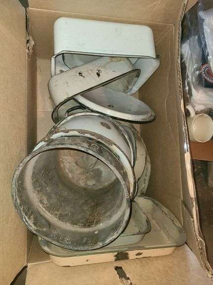 Box of Enamelware Pots & Pans