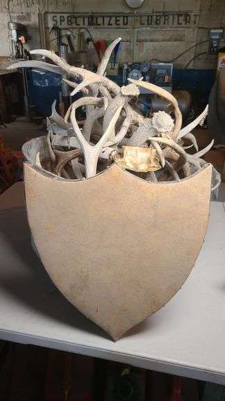LOT 394 - Large Lot of Antlers, Antler Mount Board, Galvanized Tub