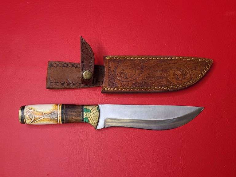 LOT 31 - Old Ram Hunting Knife with Leather Sheath