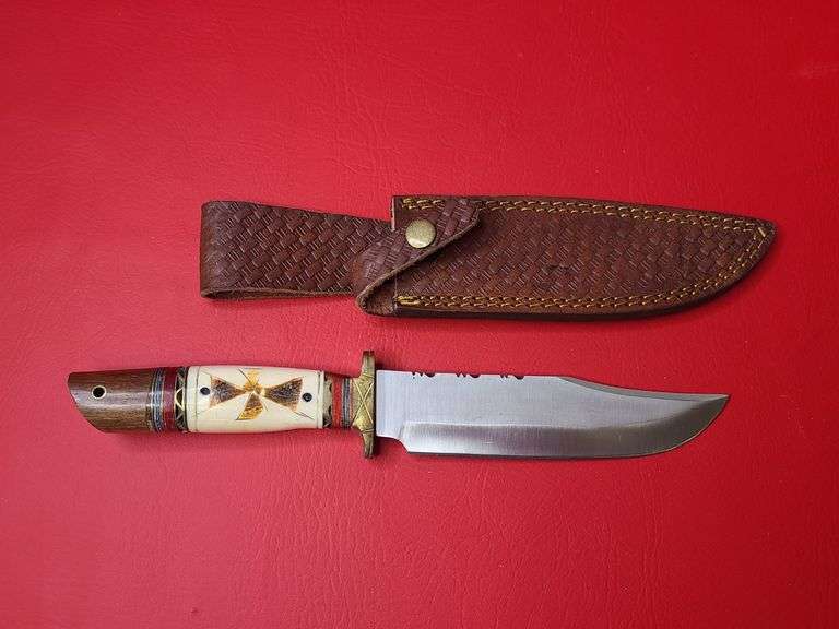 LOT 32 - Old Ram Hunting Knife with Leather Sheath