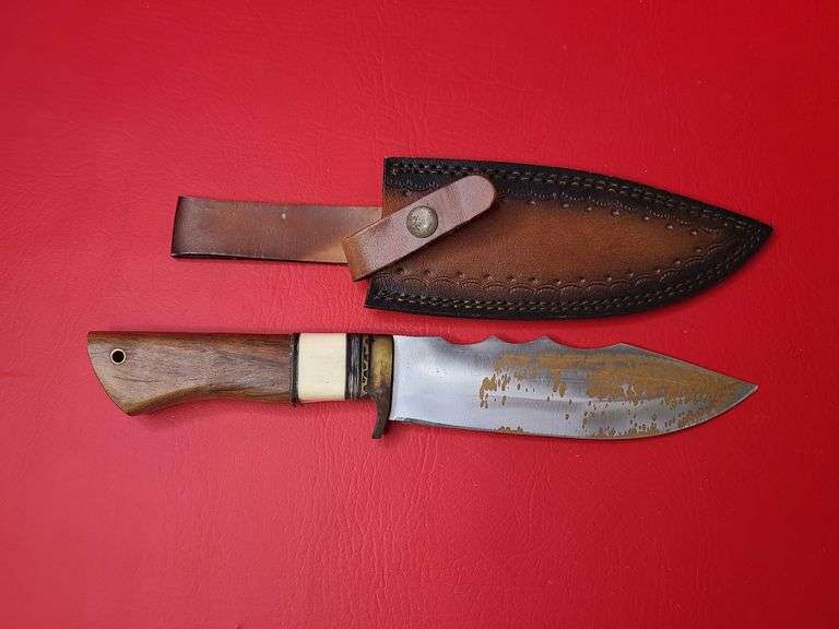 LOT 33 - Old Ram Hunting Knife with Leather Sheath