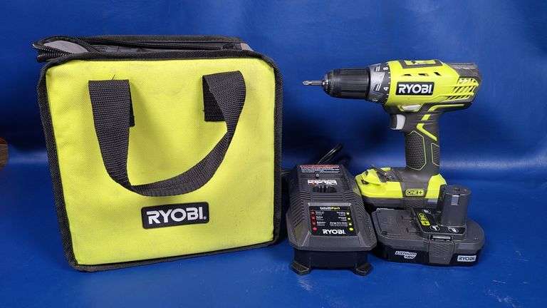 LOT 463 - Ryobi Drill, 2) Batteries, Battery Charger, Bag