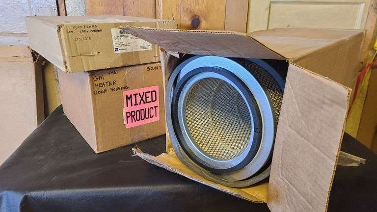 LOT 676 - Donaldson P145700 Primary Engine Filter, 05' Chevy Mud Flaps, GM Heater Door Housing