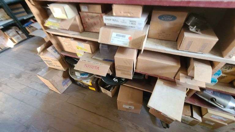 Contents of 4) Lower Shelves (Shop Roll, Toyota Parts, Ford Parts, Tail Lights, Tachometer, and Much