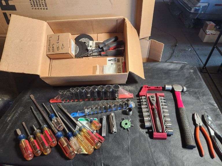 Craftsman Screw Drivers, Sanding Pads, Large Crimping Tool, Ball-Peen Hammer, Needle-Nose Pliers, Cr