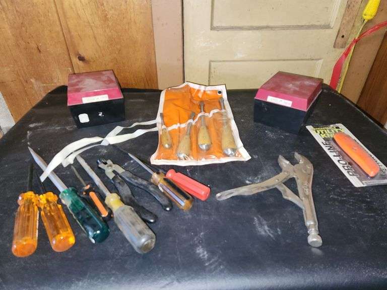 Vise Grips, Assorted Screw Drivers, Slotted Screwdrivers, Box Cutters, Craftsman Wrenches