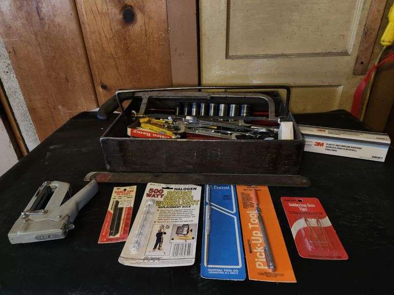 Halogen Rough Service Light, Pick Up Tool, 3M Plastic Emblem Adhesive, Saber Saw Blades, Metal Box w