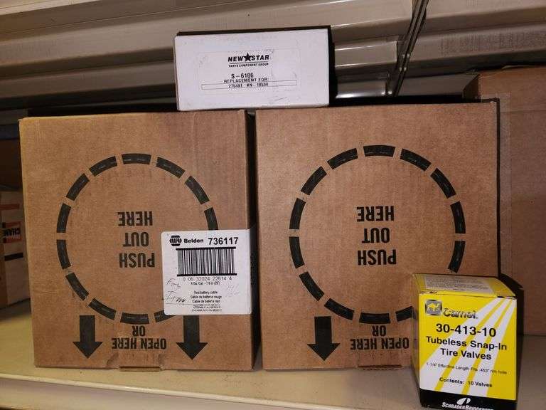 Tubeless Snap-In Tire Valves, 2) Boxes of Red Battery Cables, Replacement Air Brakes