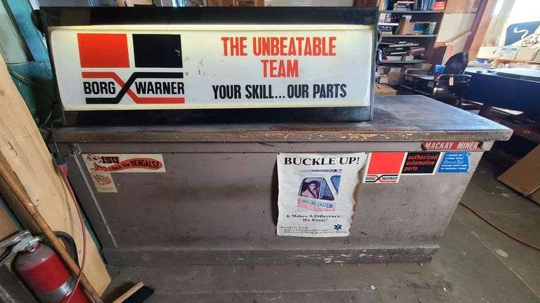 Wooden Cubby Cabinet, Borg Warner Backlit Catalog Holder