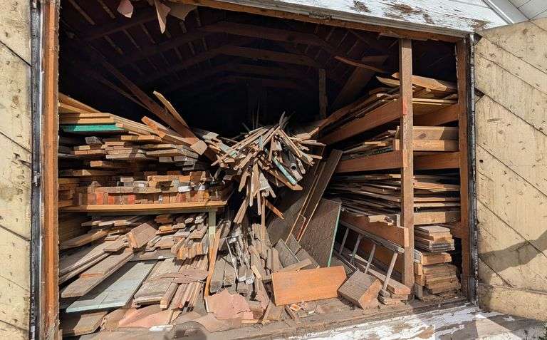 LOT 970 - Contents of Cabin: Assorted of Lumber, Plywood, 2x4’s, Trim, More