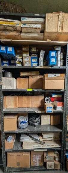 Shelf with Contents: Gaskets, Gasket Kits, Shock Absorber, Rebuild Starter Frames, Alternator Frame,