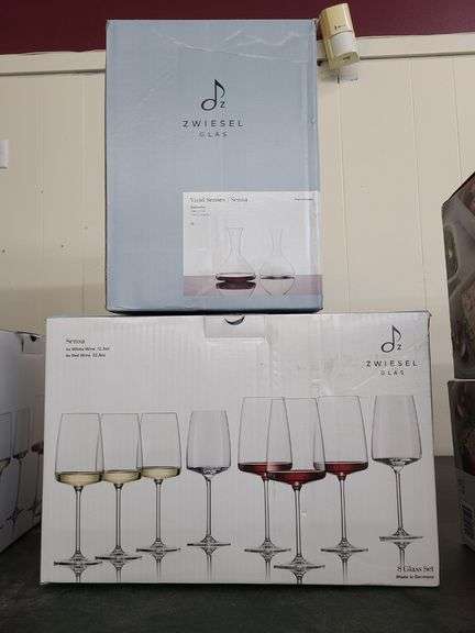 1) Zwiesel Glas Decanter, 1) Sensa 8pc Wine Glasses