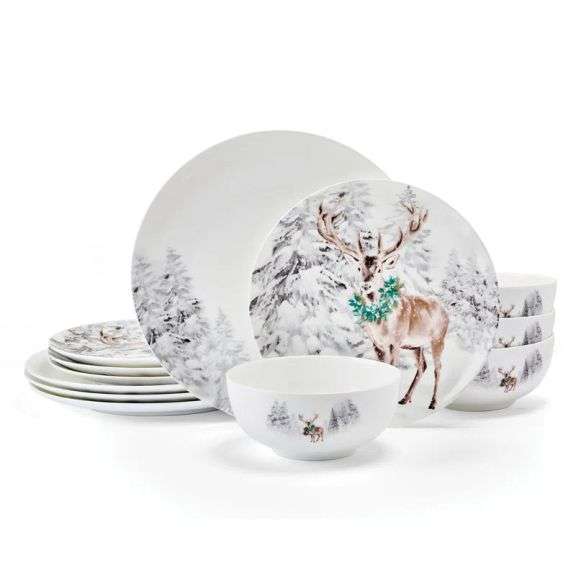 LOT 90 - 1) Woodsy Winter 12pc Dinnerware Set