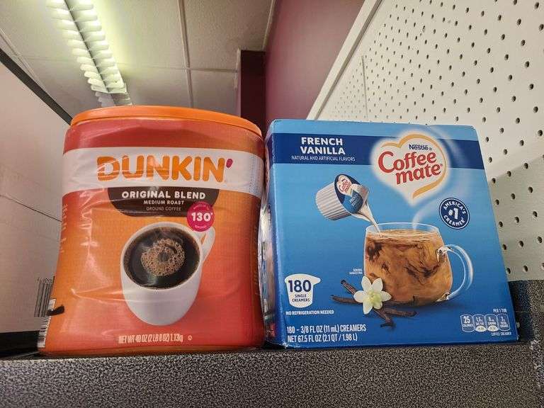 1) Dunkin Coffee, 1) Coffee Mate Creamer