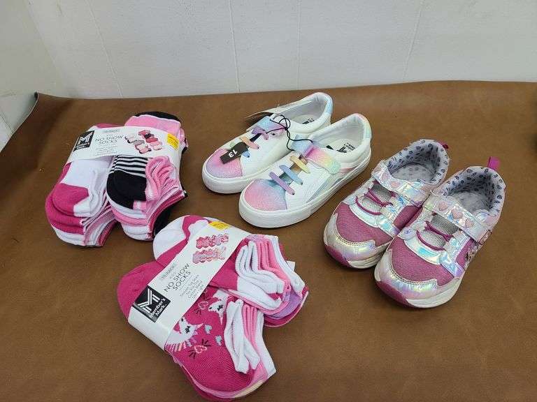 2) Kids No Show Socks, 1) Kids 13c Play Shoes, *1) Kids 12c Minnie Mouse Sneakers