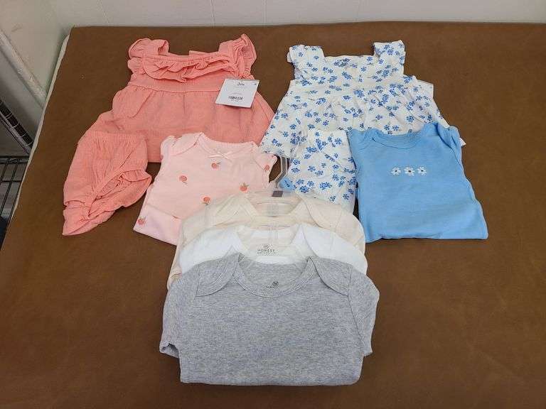 Infant Size 3m & 3/6m: 2) 3pc Carters Oufits, 1) 3pk Honest Company Bodysuits