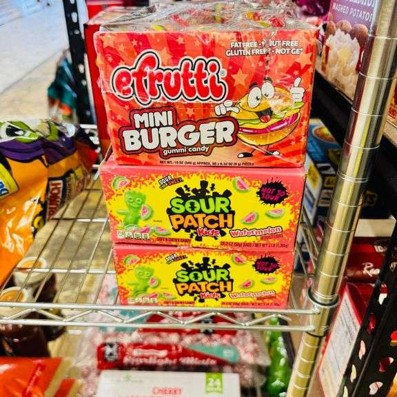 1) Efrutti Mini Burger Gummi Candy 2) Sour Patch Kids