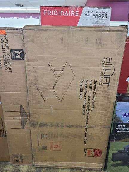 *1) Seville Classics Air Lift Adjustable Height Glass Desk