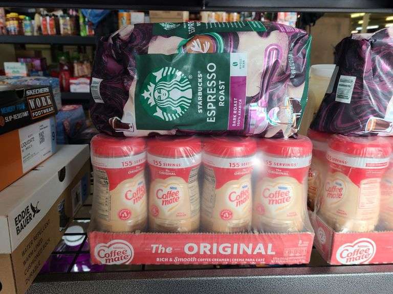 1) Coffee Mate Original Creamer 8pk, 1) Starbucks Espresso Whole Bean