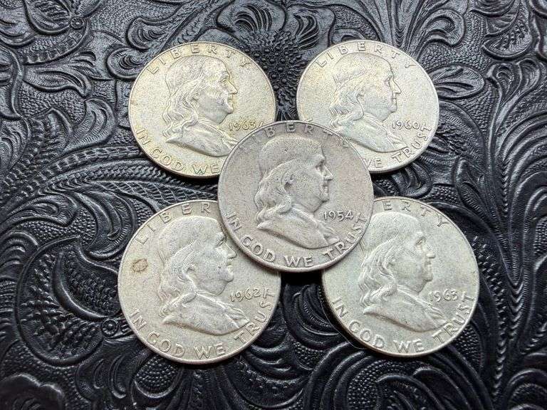 5) Franklin Half Dollars 1954-1963