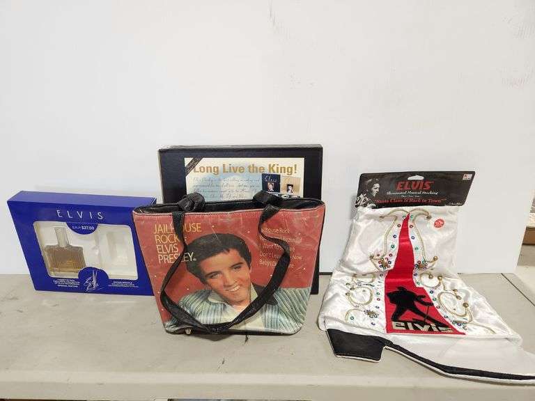 LOT 2050 - Elvis Purse, Boot Stocking, Cologne and Records